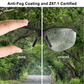- Anti-fog Eye Protection: Anti-fog coating layers and ANSI Z87.1 certified ensure this shooting eyewear always clear vision and helps you focus on precise task or matter at hand, all the while protecting your eyes well.