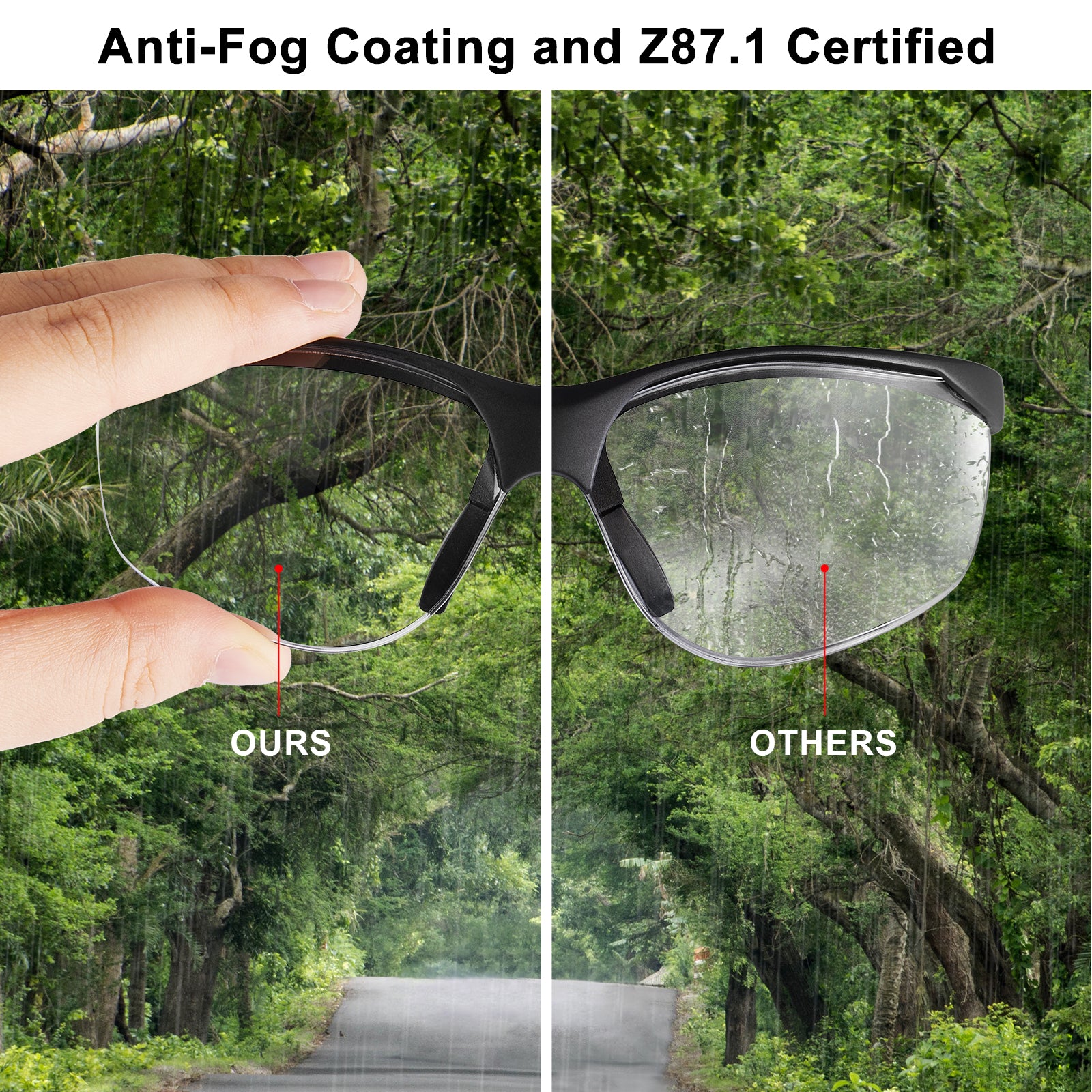 - UV400 Protective Eyewear: Compared to most anti fog eye pro, this semi-rimless wraparound design glasses also block 99.9% of harmful UV radiation,suitable for a variety of indoor and outdoor use.They make great lab glasses, shooting and hunting glasses,safety work glasses and more.